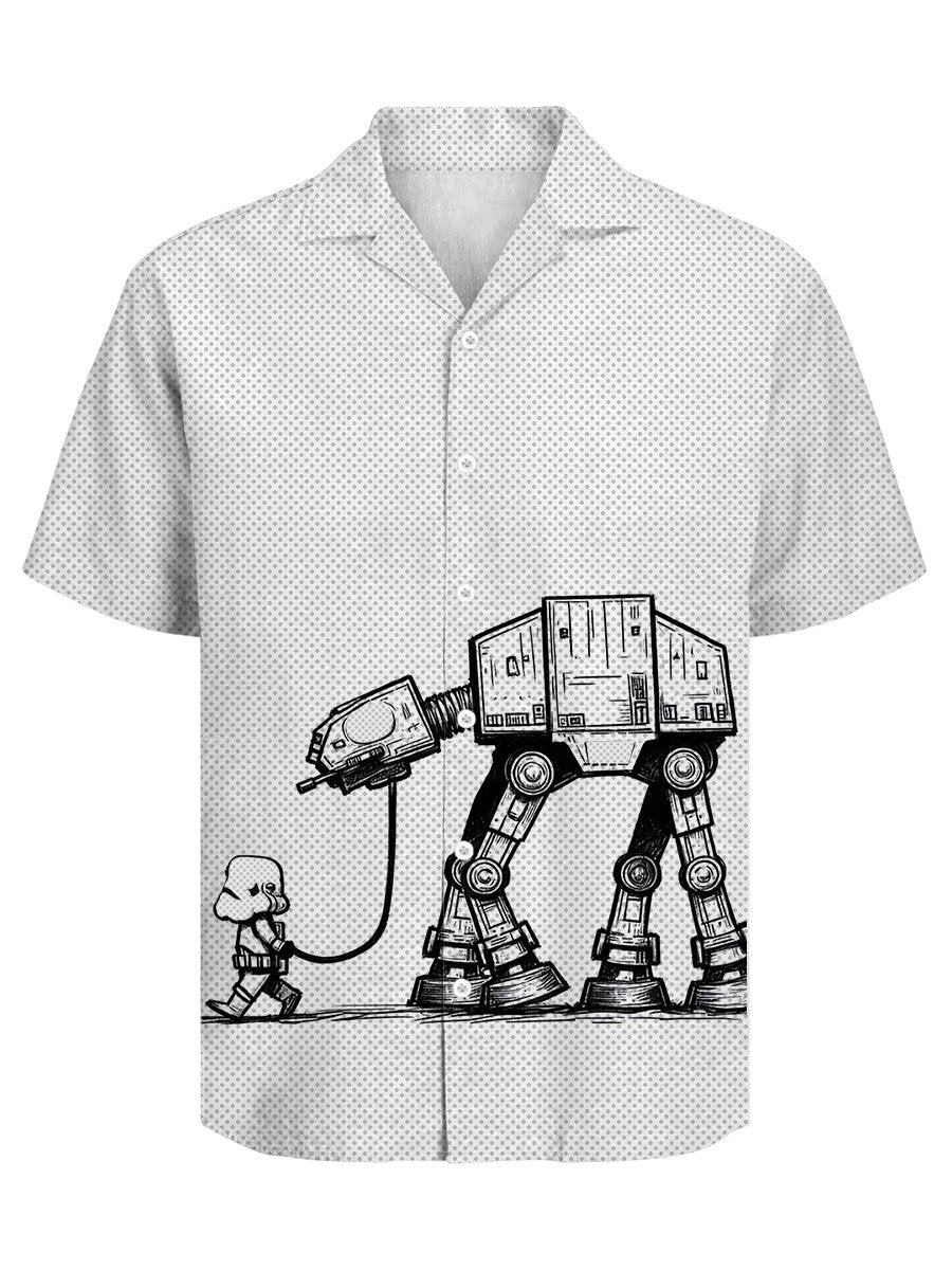 Men's Retro Casual Puppy Robot Cuban Collar Short Sleeve Shirt